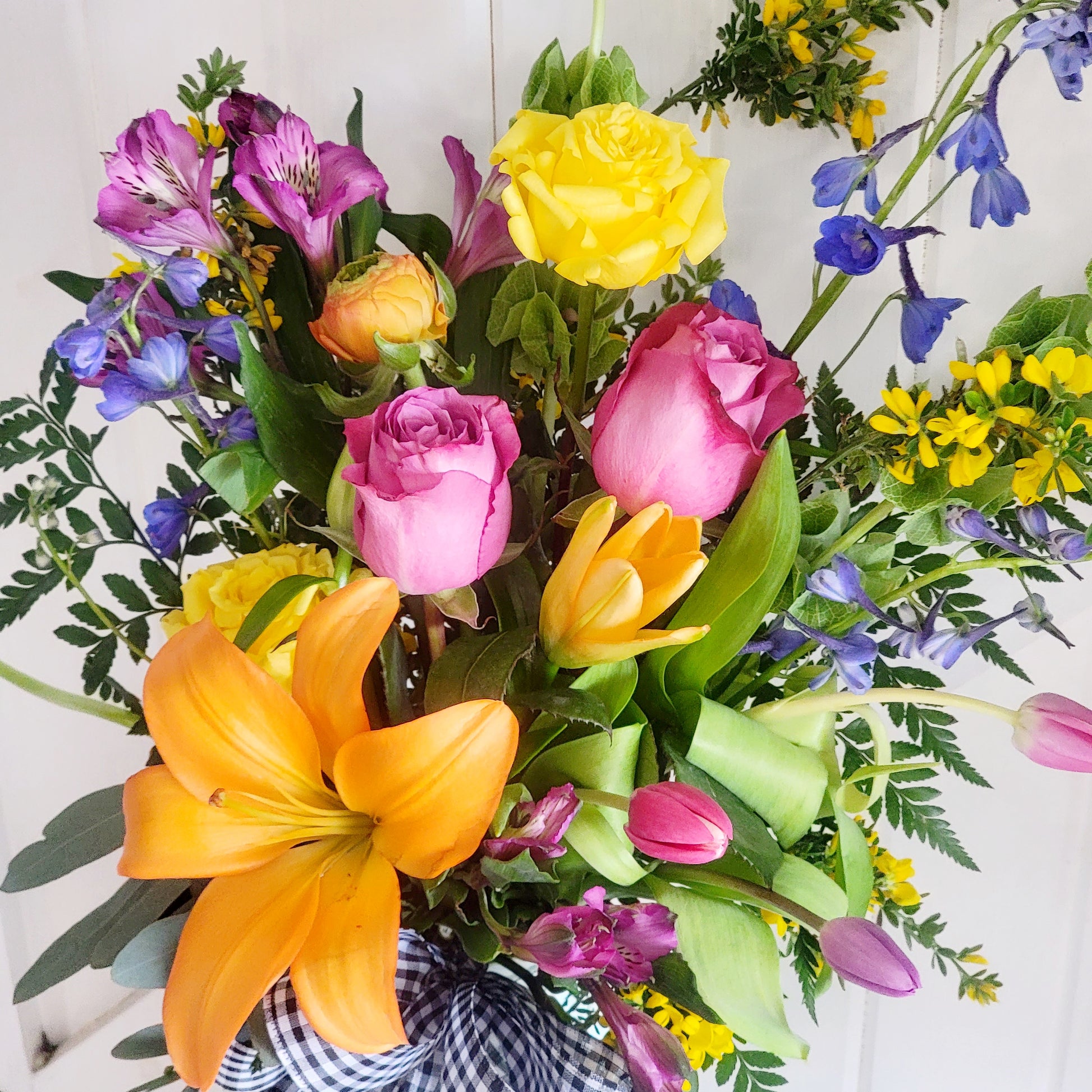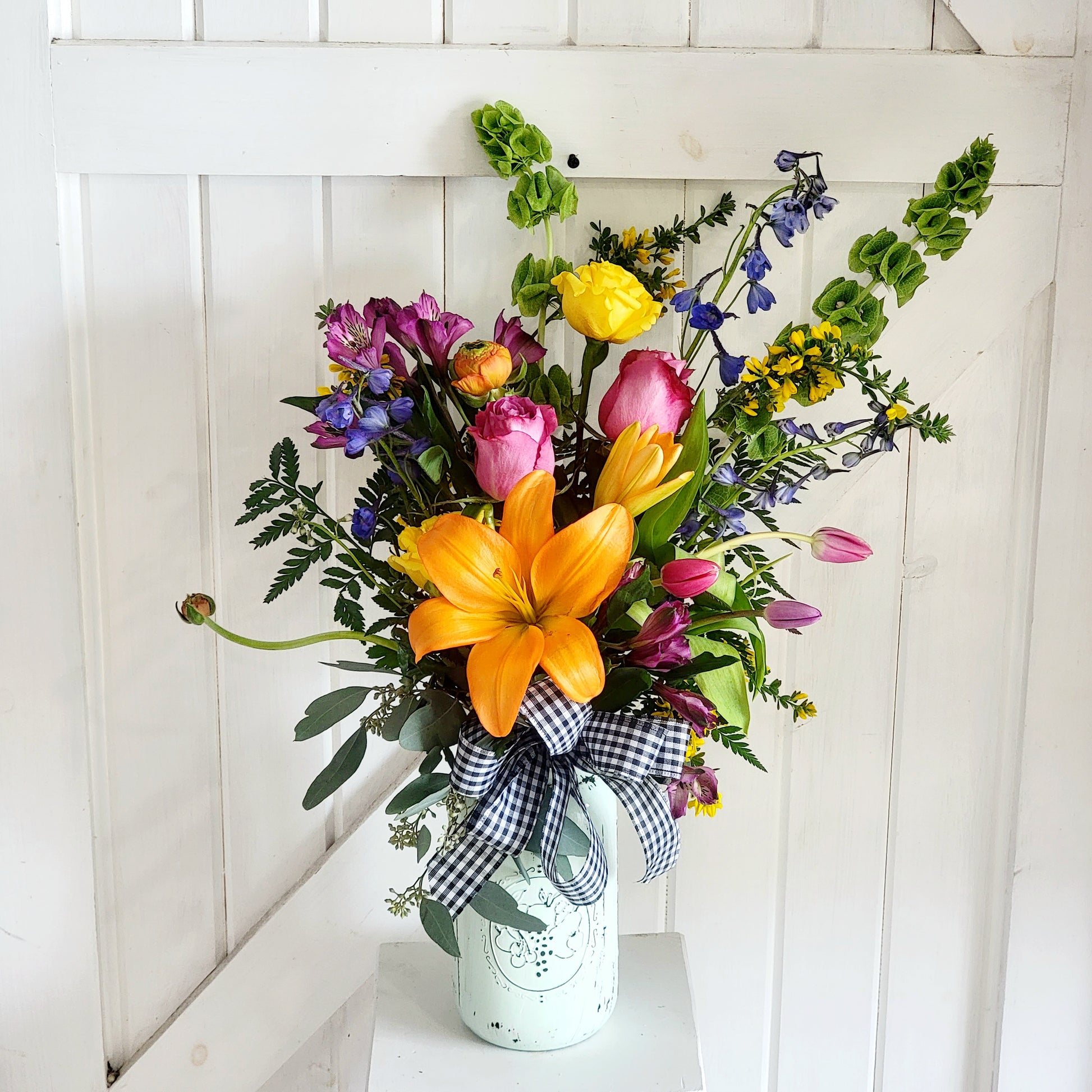 Beautiful, distressed mason jar arrangement! Quart and Half Gallon sizes available!